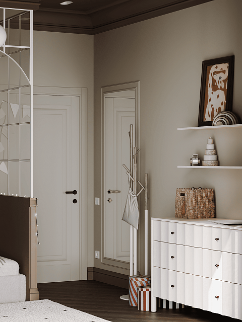 Весь интерьер выполнен в нейтральных оттенках, а акцентами тут служит декор. Дверь от Terem "Bergamo 1" сливается с общим фоном, тем самым не перегружая его.
