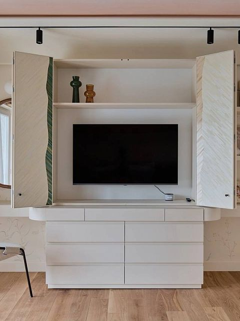 В создании уютного интерьера активно участвовала фабрика «Терем», установив двери модели Secret. Их система скрытого короба позволяет вписать полотна в единую плоскость со стеной без наличников, что придает интерьеру современный вид. Алюминиевая кромка защищает торцы дверей, а незаметные скрытые петли обеспечивают функциональность и эстетику.