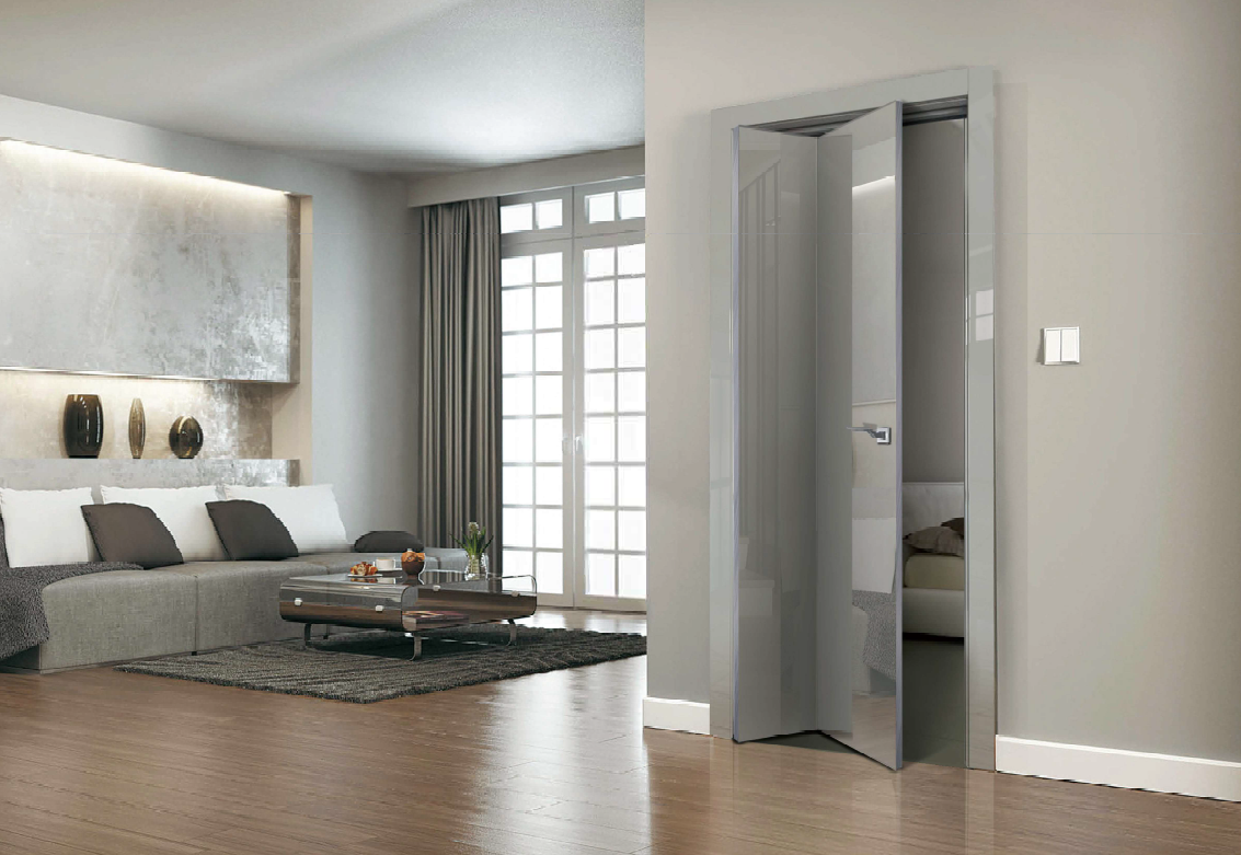С механизмом TWICE дверное полотно может складываться пополам. В системе TWICE 90° дверь складывается в положении, перпендикулярном дверному проему.